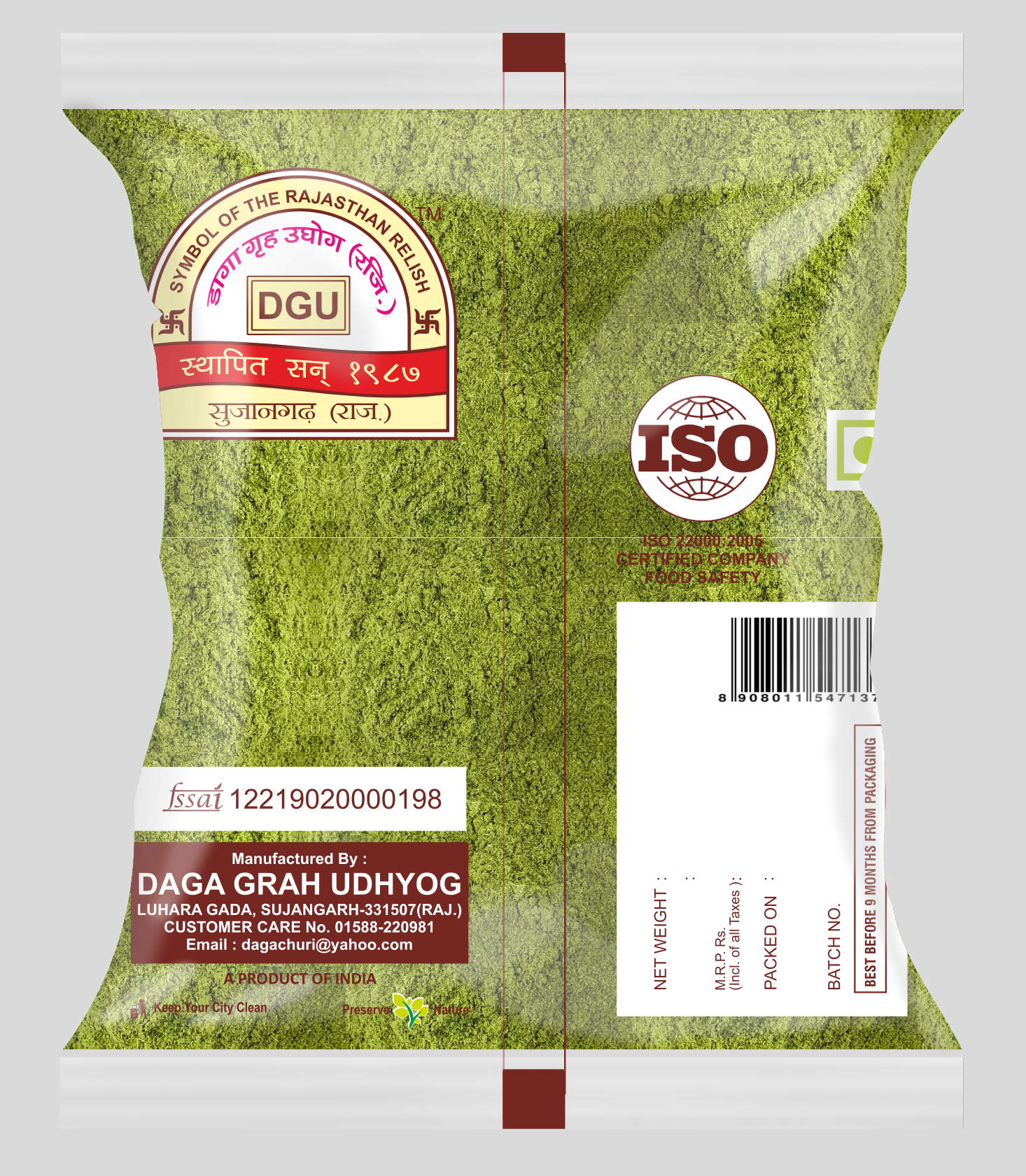 Discover Daga Grah Udyog's Puddina Chutney Powder, an instant mint condiment formulated with 100% organic and natural ingredients using authentic home-made preparation methods. Effortlessly prepare a refreshing chutney by mixing with water or create a cooling yogurt-based accompaniment by blending with curd. This pure, additive-free powder captures the vibrant essence of fresh mint, delivering genuine flavor for those who value quality and nutritional integrity in their culinary choices.